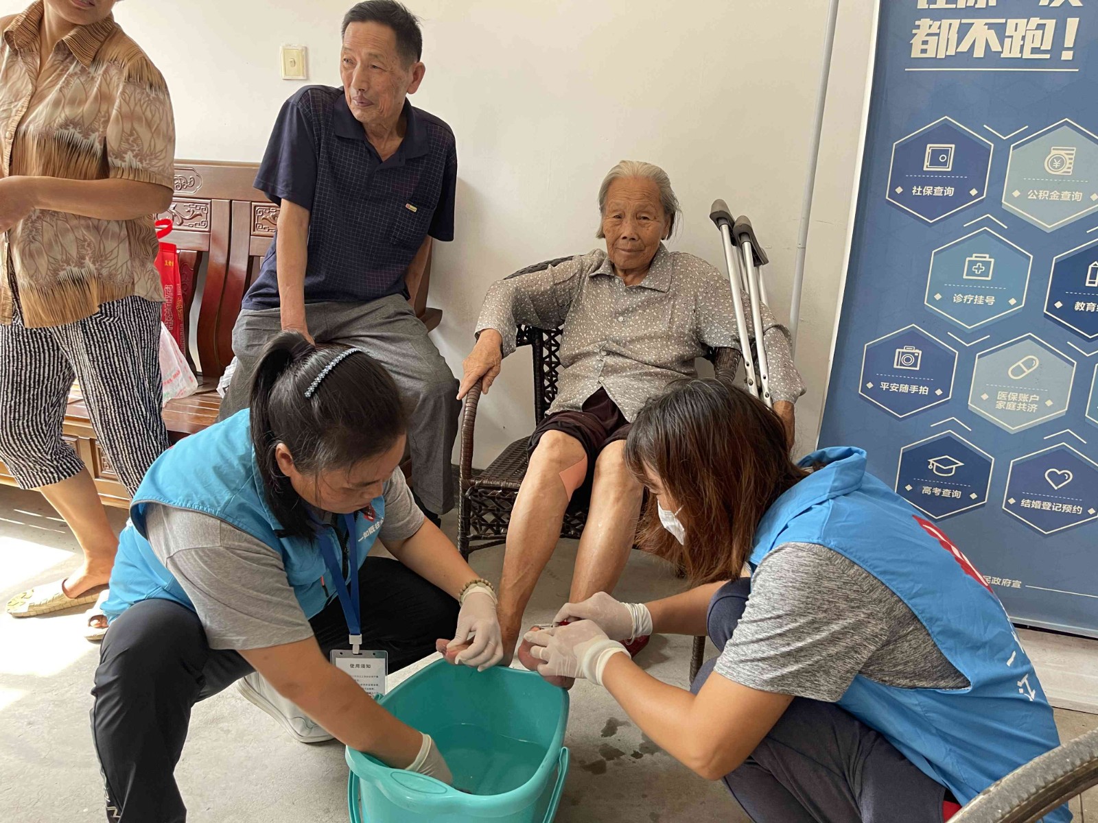 2021年9月16日,江山市一如既往志愿服务中心志愿者们走进江山市贺村镇河东村送温暖活动,帮助他们洗头理发、测量血压、剪指甲。