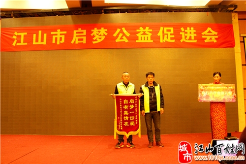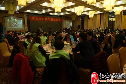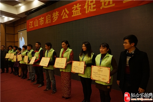 12月25日下午,江山市启梦公益促进会在万隆度假村举行2016“快乐公益 感谢有您”年会。对一年来表现突出的义工与爱心企业进行表彰。我市团市委副书记柴效楠;民政局副局长祝新洪、科长丁年录;经济开发区管委会副主任潘云良;市委统战部《江山娇子》杂志总编辑唐晋枫;虎山街道桐岭社区代表毛志庆等以及江山市其他公益组织负责人;周边县市爱心团队特邀嘉宾出席了年会。