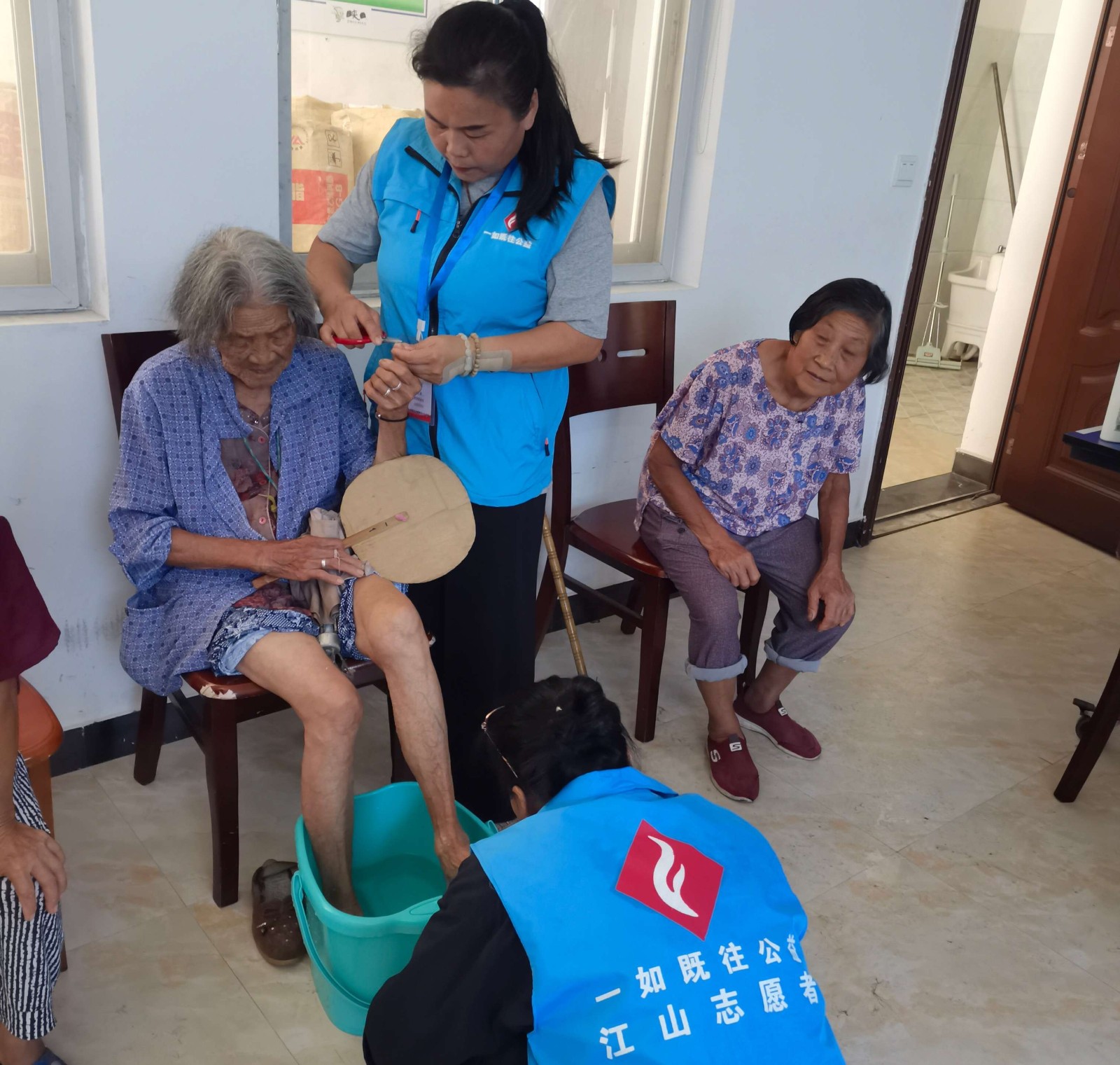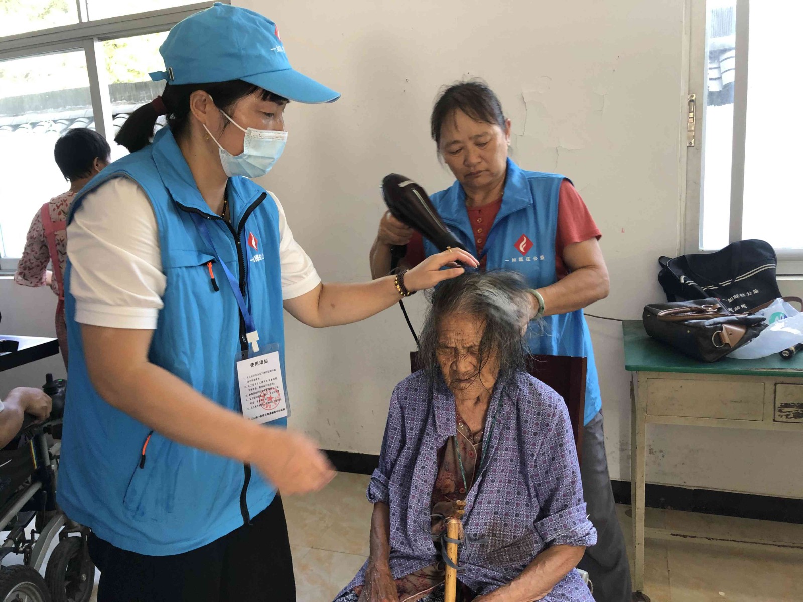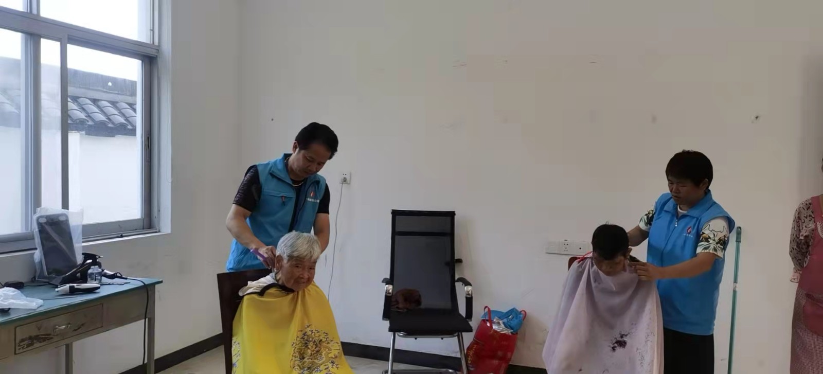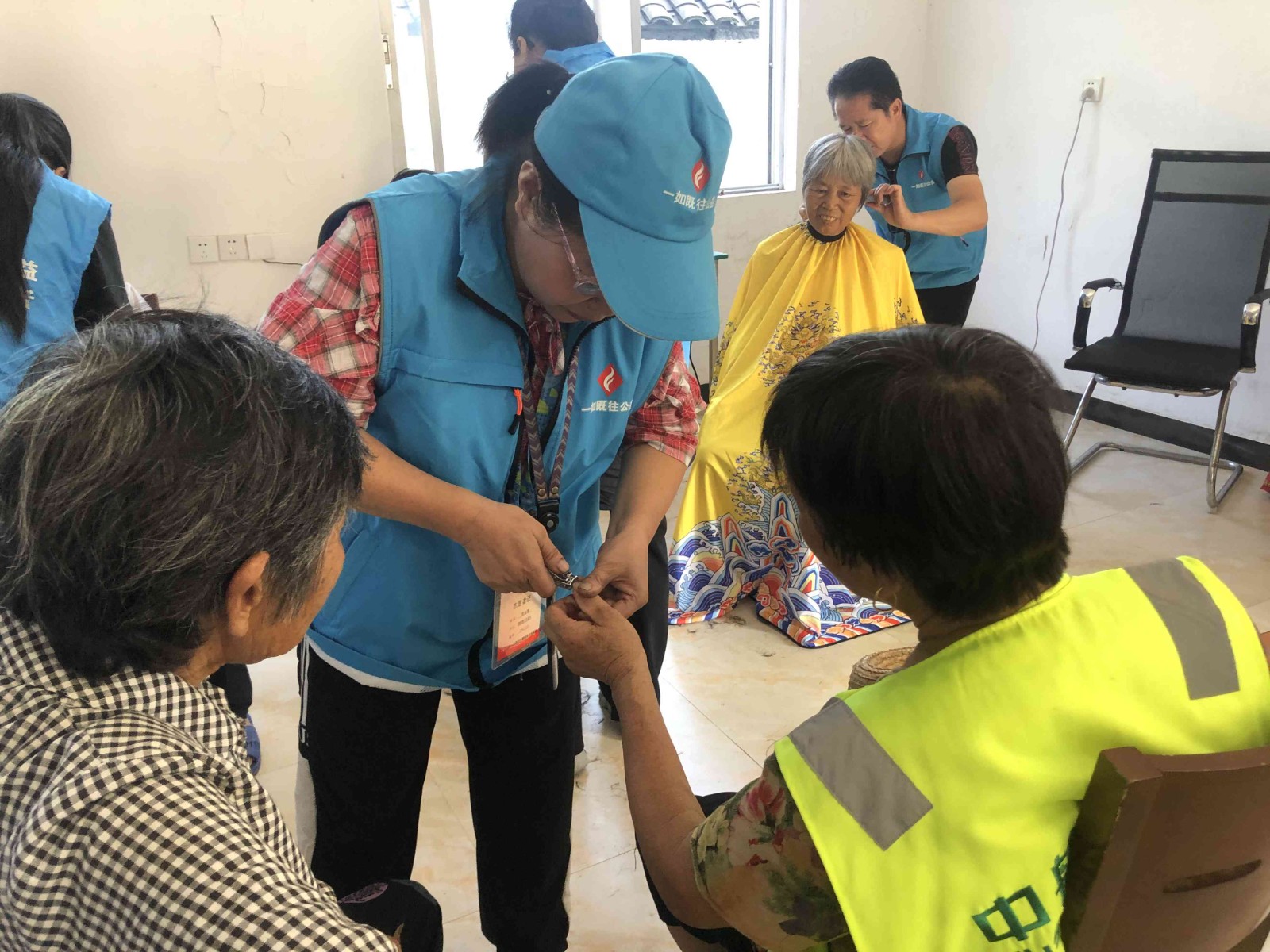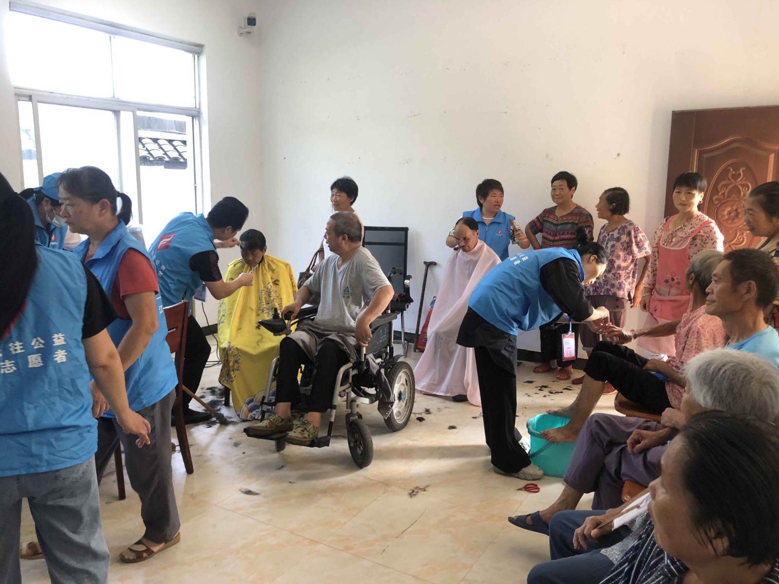 2021年9月10日,江山市一如既往志愿服务中心志愿者们走进江山市峡口镇枫石村给村上70岁以上的老人理发、剪指甲。