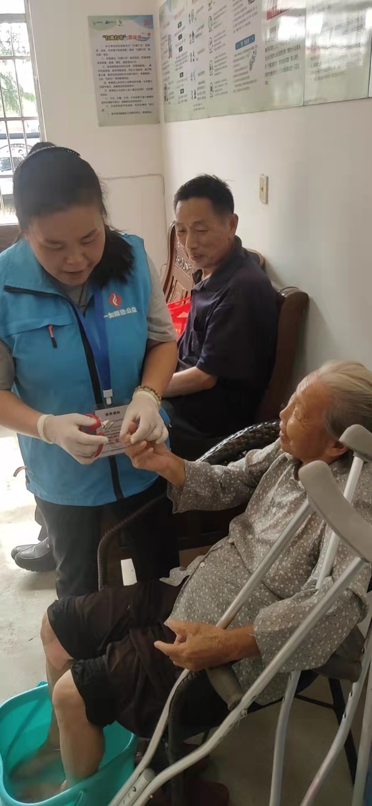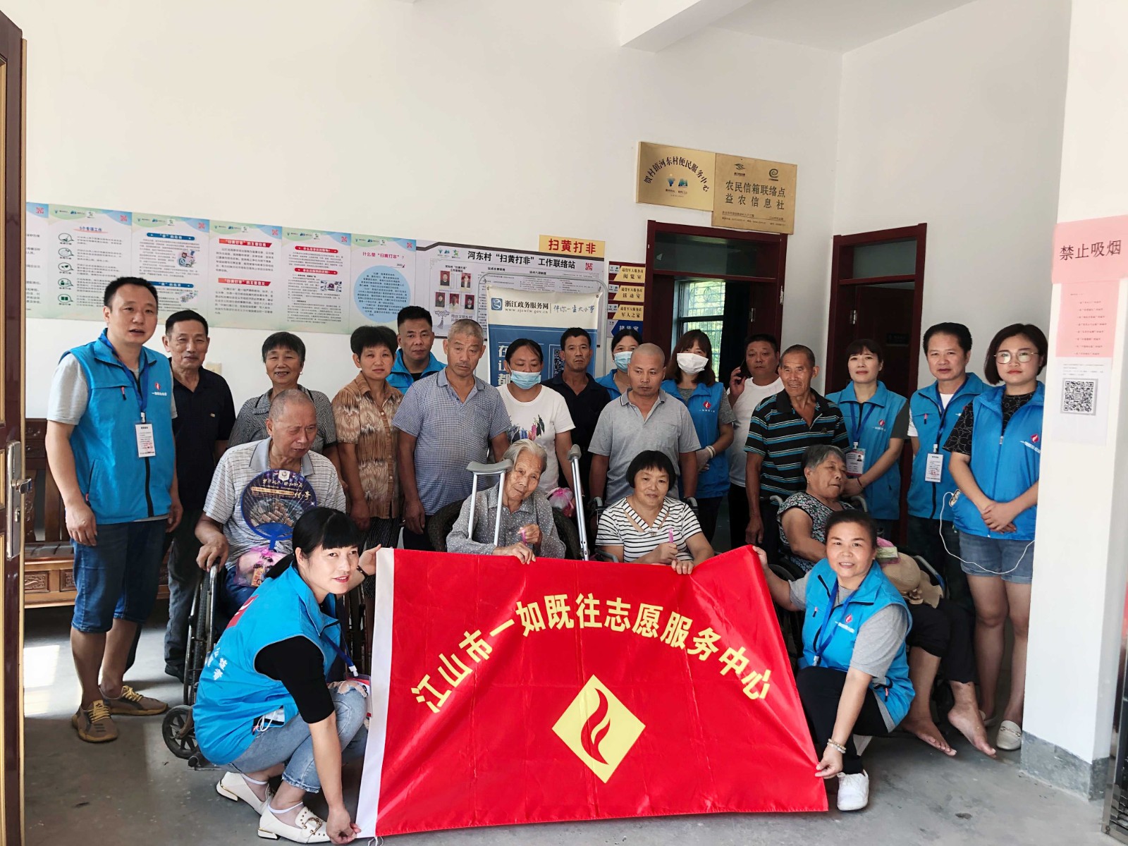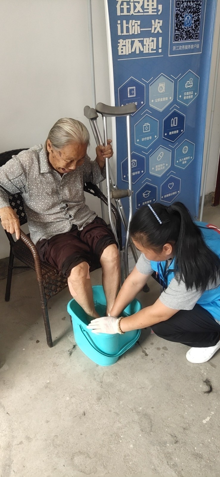 2021年9月16日,江山市一如既往志愿服务中心志愿者们走进江山市贺村镇河东村送温暖活动,帮助他们洗头理发、测量血压、剪指甲。