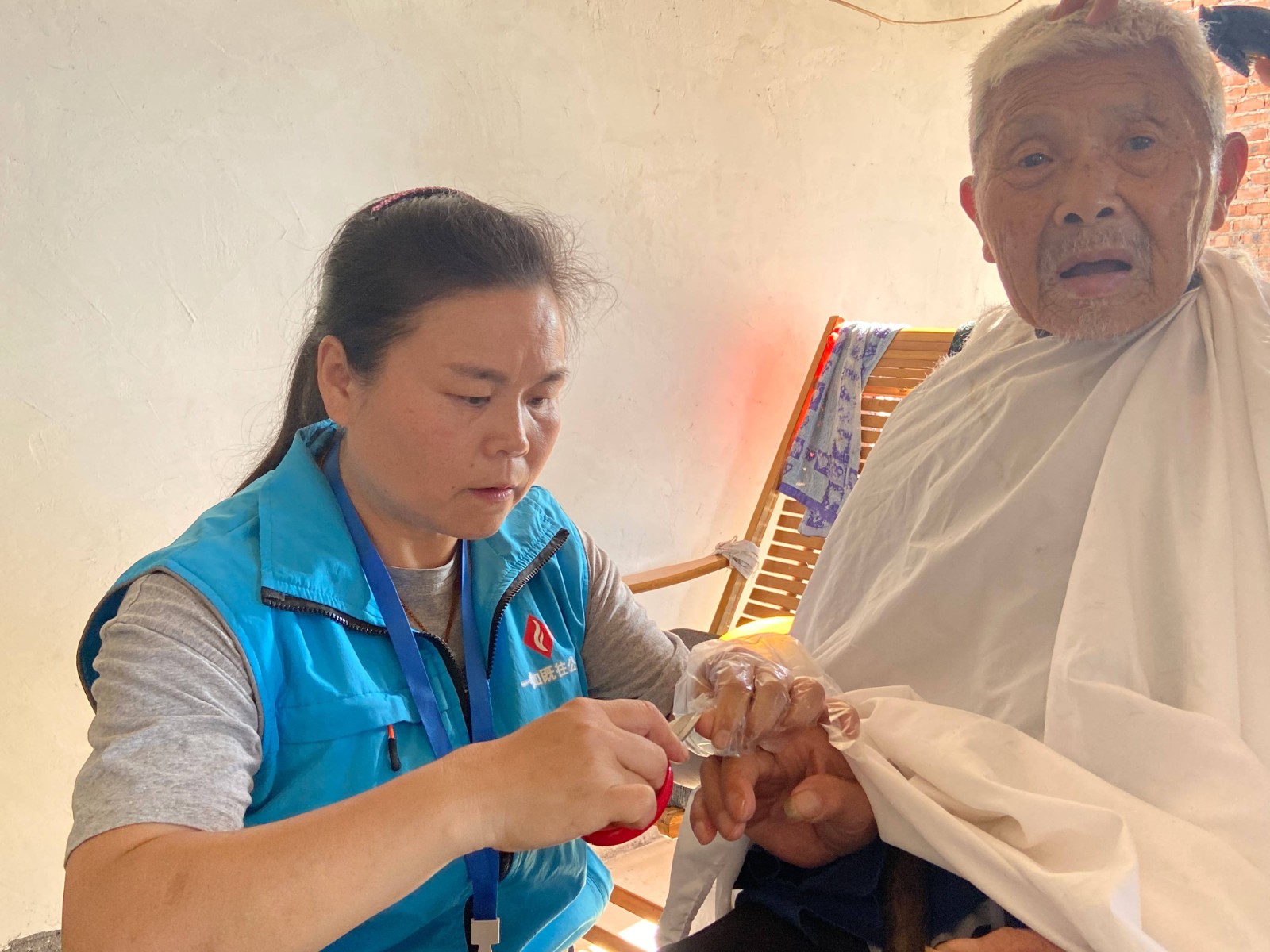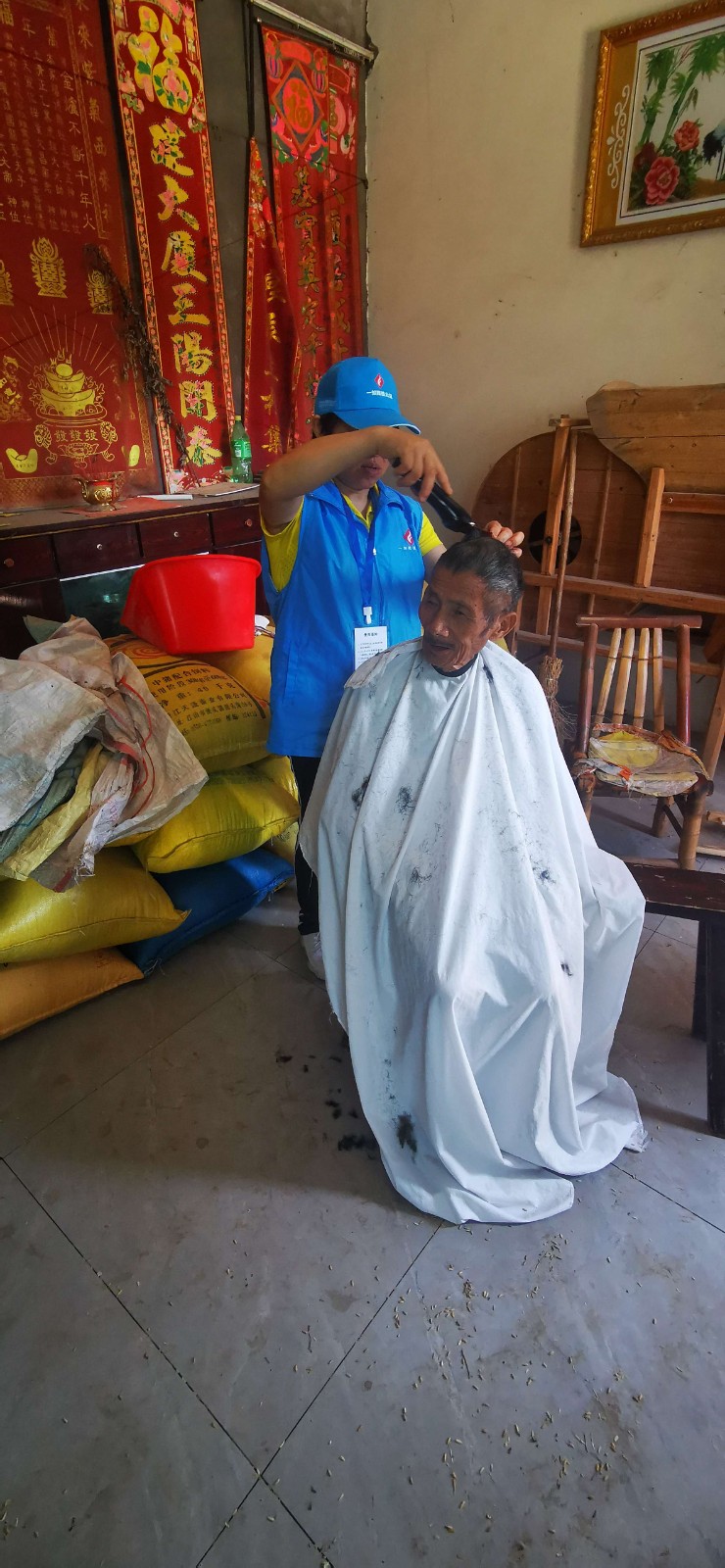 2021年10月6日,江山市一如既往志愿服务中心志愿者们走进江山市贺村镇永兴坞村给80周岁以上的爷爷奶奶们免费理发;测量血压;发一份小礼品,90周岁以上还发一个长寿红包。