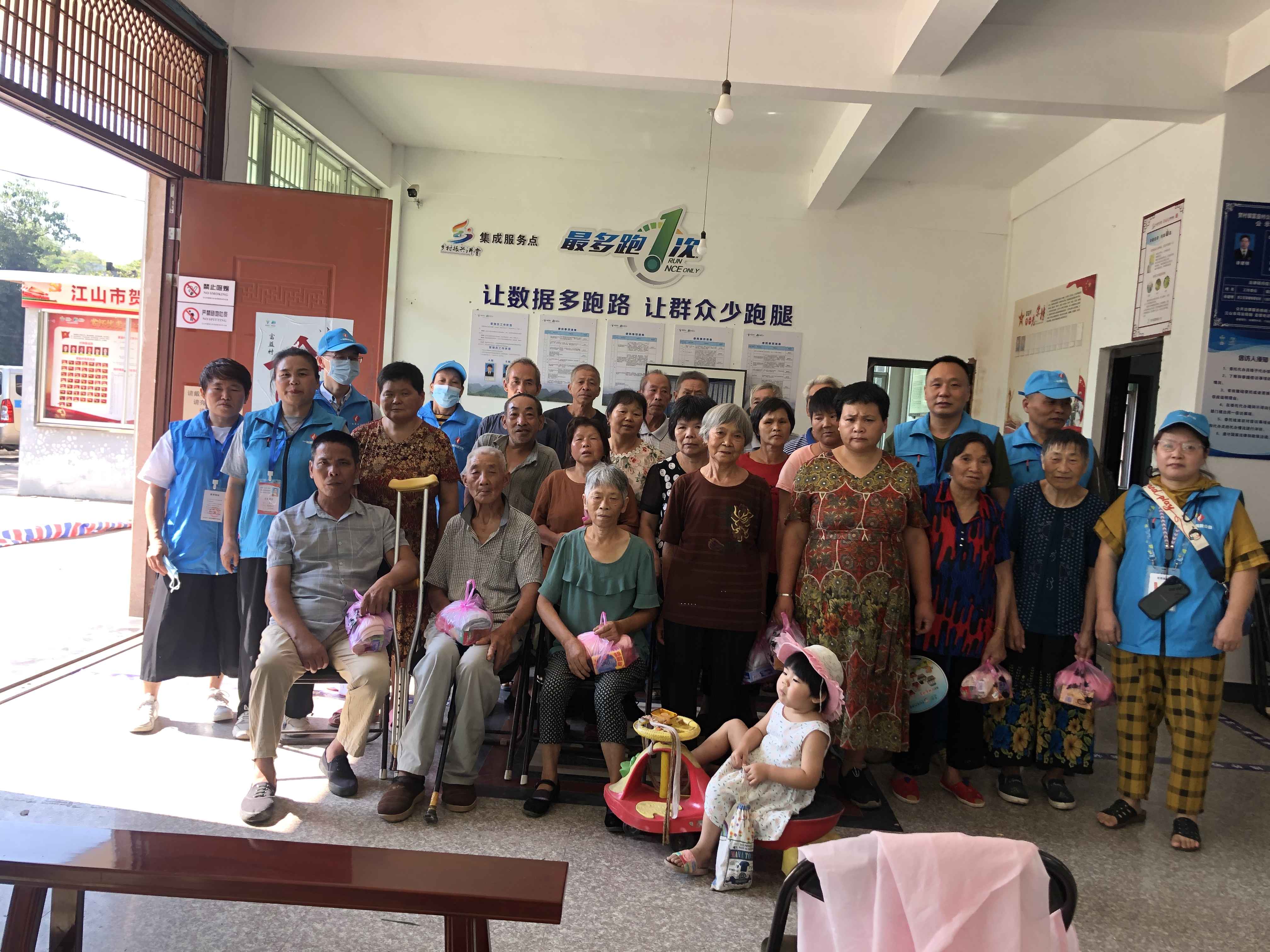 2021年9月26日,江山市一如既往志愿服务中心志愿者们走进江山市贺村镇富益村,给他们洗头理发、测量血压、剪指甲。