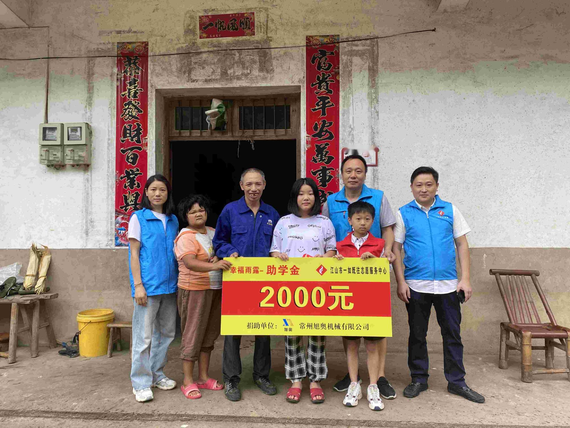 2021年8月11日,走进江山市石门镇长山源村东寨8号傅雅婷家。她家庭贫困,母亲智力残疾,靠父亲打点零工维持生活。常州旭奥机械有限公司何水祥总经理和她长期贫困助学结对,给她家庭减轻生活负担。