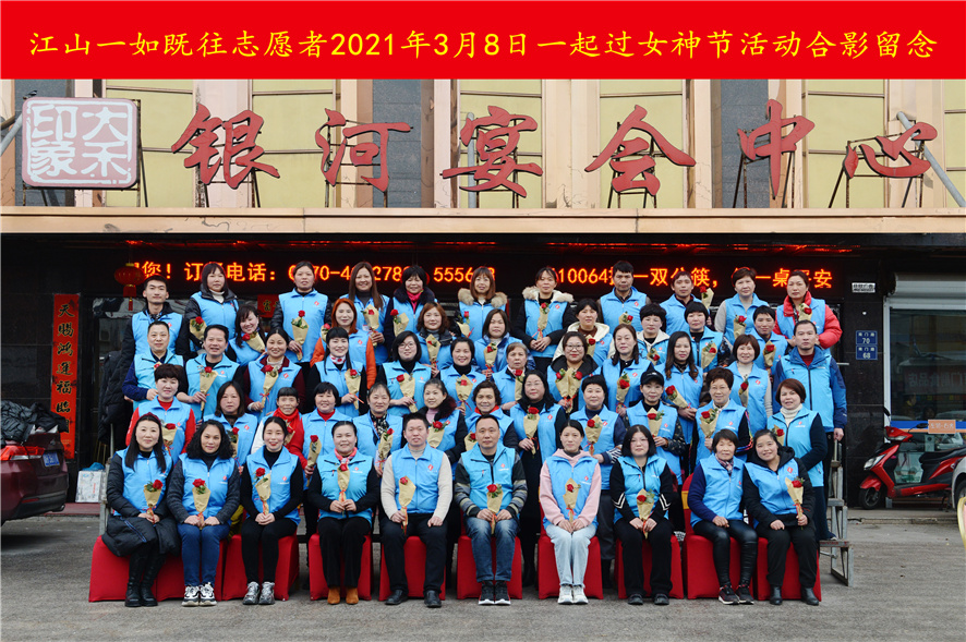 2021年3月8日,江山市一如既往志愿服务中心志愿者一起过女神节,给每位志愿者送上一朵鲜花和一袋抽纸,大家在一起度过了一个愉快的节日!