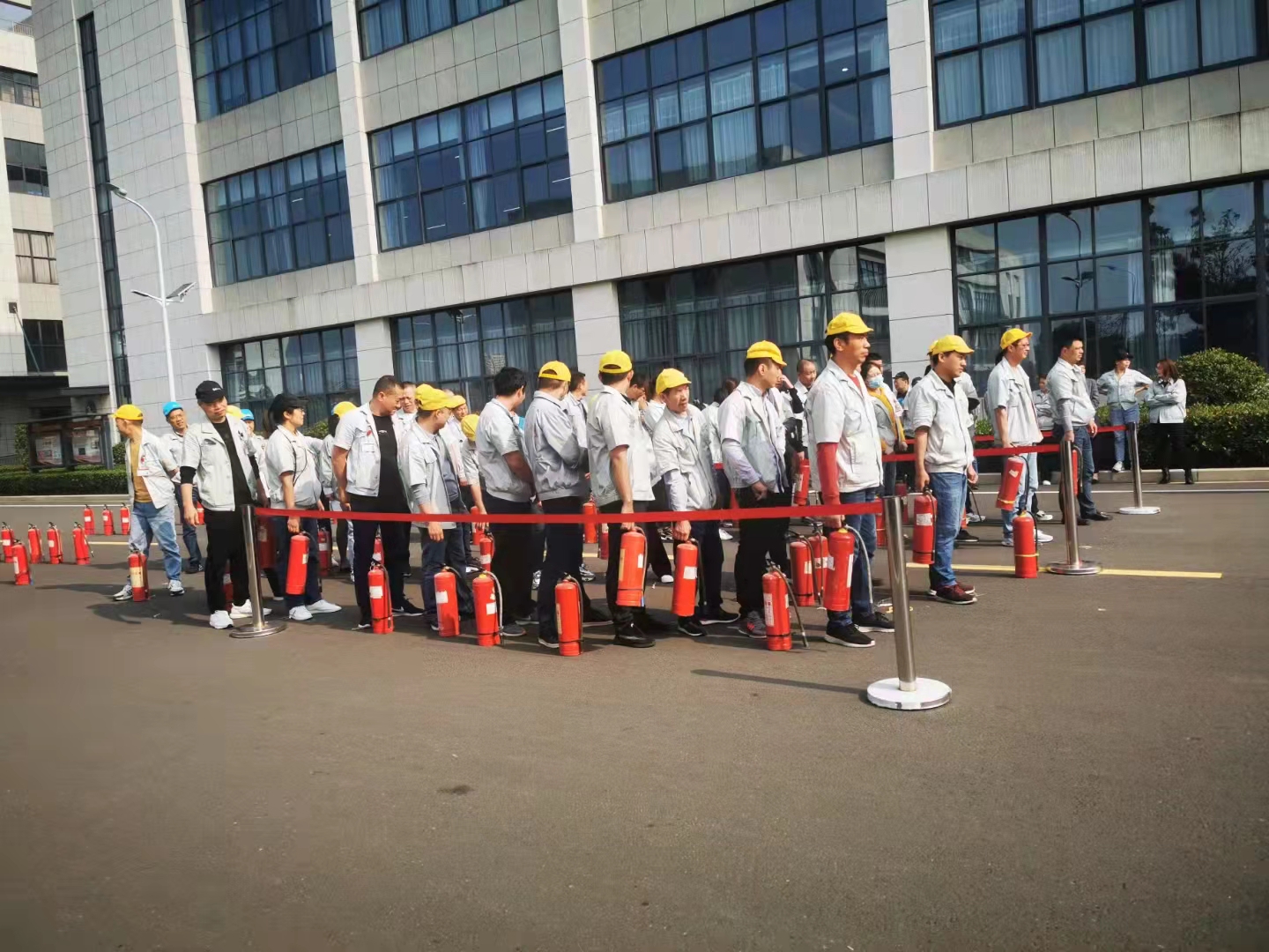 常州市一如既往消防器材有限公司携手常州华利达服装集团有限公司进行火灾演习