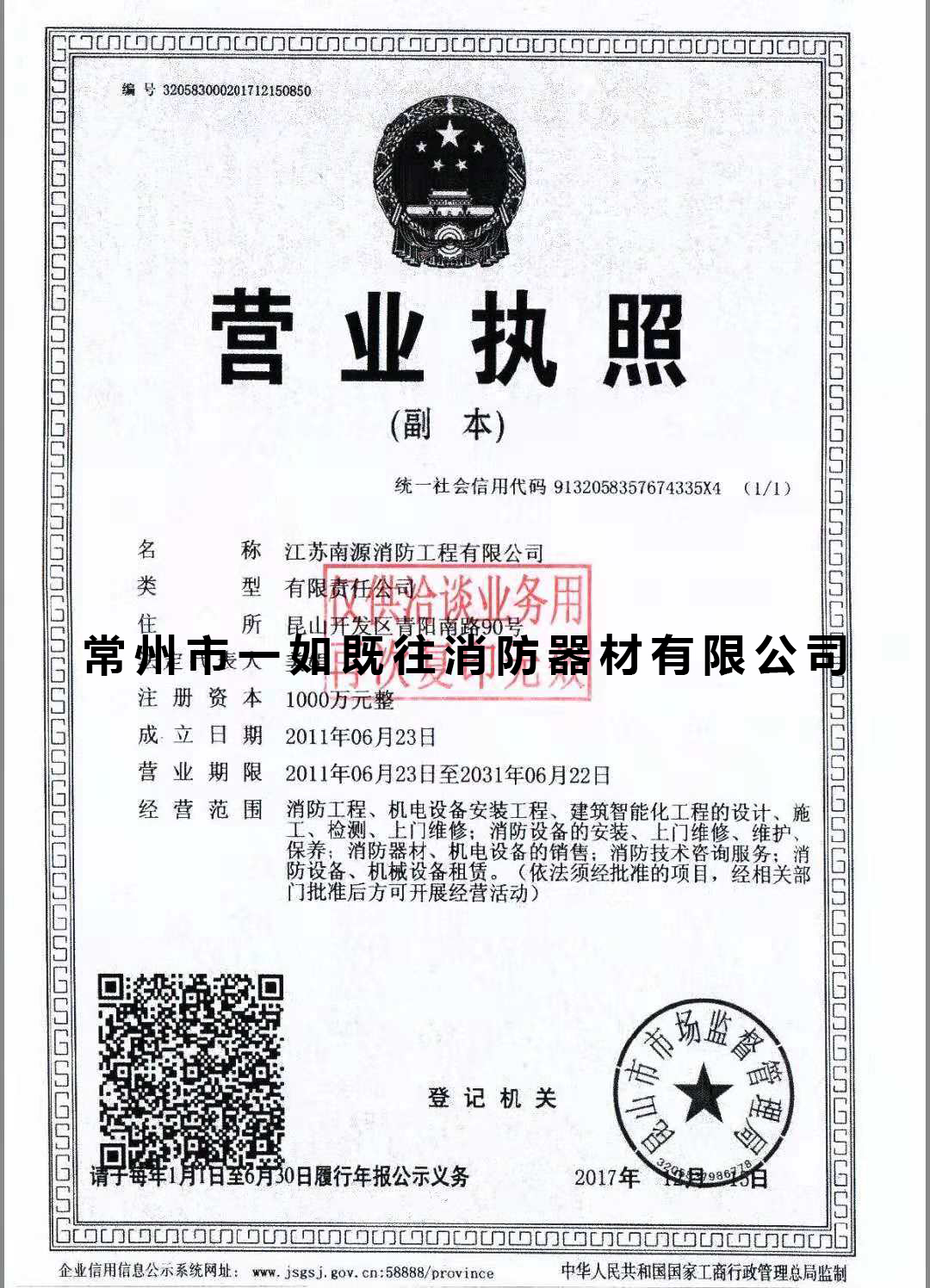 消防工程营业执照